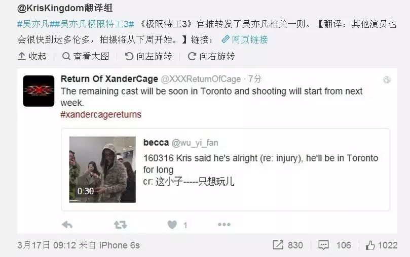 极限特工还在拍摄中,已经离开多米尼加回到多伦多的凡凡什么时候能回到北京啊~咬手绢~下面分享电影拍摄过程中,甄子丹大哥分享的图片和秒拍视频【视频点击阅读原文观看】,以及其他剧组主创在公公平台的各种消息。注意注意!前方高能预警!第四张图里边扎在孩子堆的凡凡,吴三岁和其他小盆友完美融合,难以分辨,大家来猜猜哪个是宝宝呢嘻嘻