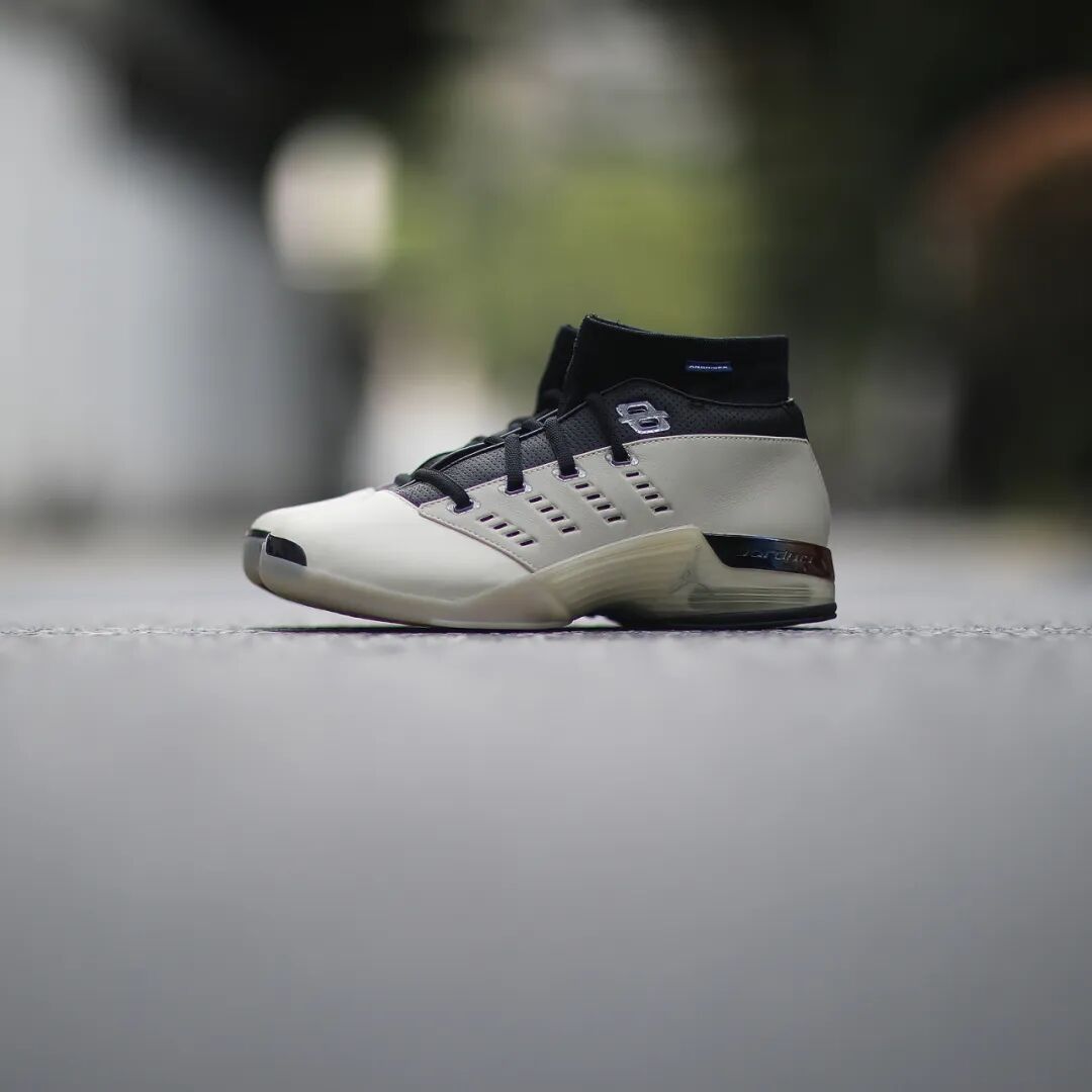 全新 Air Jordan 17 Low 以文化档案为灵感,将经典配色与未来设计语言完美融合,成为2025年球鞋圈的“考古珍品”。鞋身主调采用质感十足的米色皮革,呼应 Beach 主题,侧边则点缀黑色穿孔皮革与金属银细节,营造出复古优雅的视觉效果。