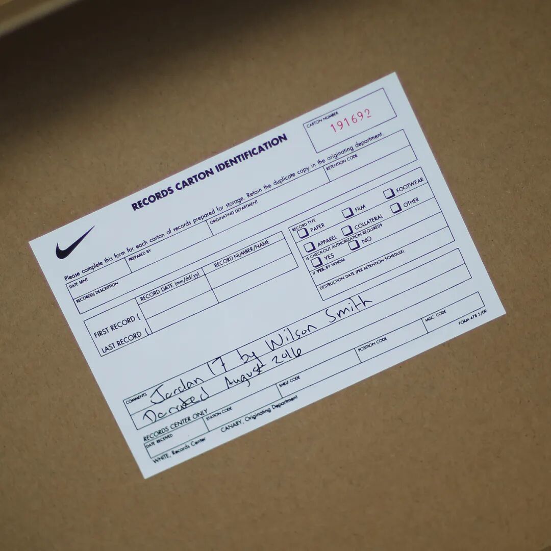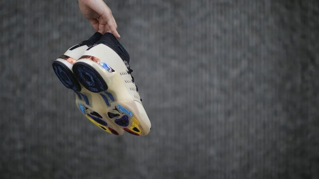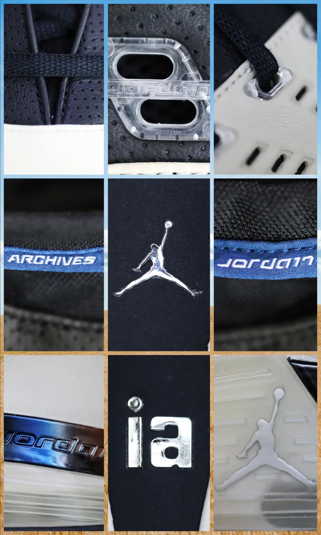 半透明外底暗藏玄机,每一处色块均对应一双元年 AJ17 配色,宛如球鞋族谱,致敬2002年经典球员专属版本等传奇设计。后跟绣有 Jumpman Logo 与金属质感的 IA 徽章,鞋舌及鞋垫则印有 Archives 字样与无限符号,细节拉满,尽显匠心。