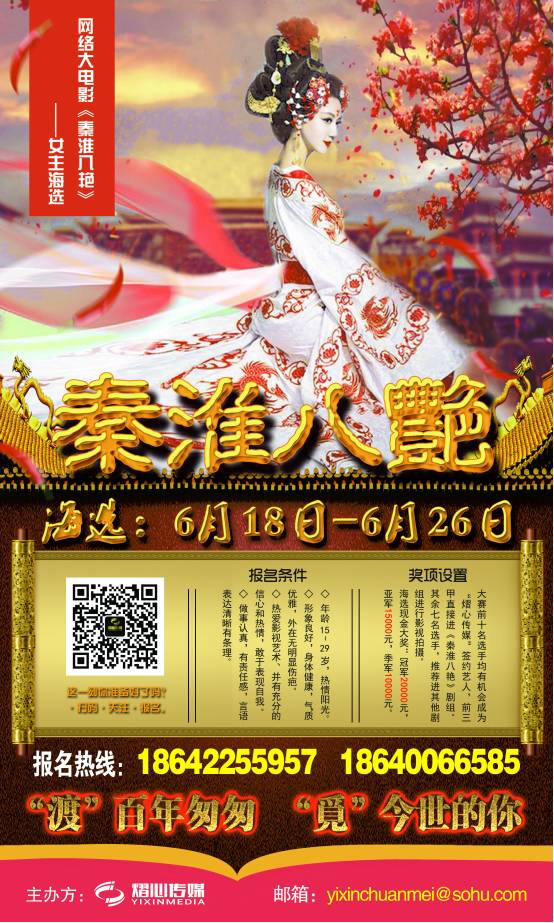 近日,国内首部百万级制作、海量特效网络大电影《秦淮八艳》女主海选报名活动正式启动啦!本次活动东北赛区由辽宁熠心文化传媒有限公司主办,北京赛区由魅力女人商学院北京分院协办,面向东北、北京赛区广大有志于表演事业,具有丰富表现力和一定可塑性的青年女性。