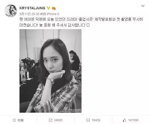 制作发布会结束以后她还在自己的微博上写道“多亏粉丝们今天电视剧《毕业季》的制作发布会和首次拍摄很好的结束了!谢谢大家一直支持我。”