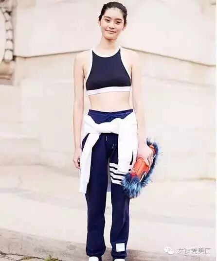 运动型内衣也是挺不错的,很好的展现身材性感的地方,将外套系在腰间,时髦帅气更有活力。