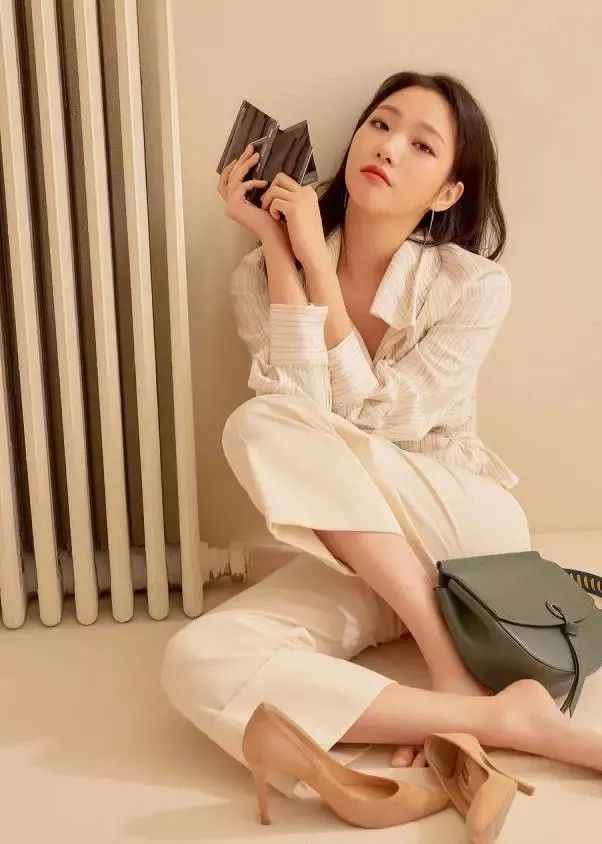 白色收腰款衬衣,搭配同色系阔腿裤,一改往日的可爱风格,画风简约高级,非常适合作为职场穿搭的参考。