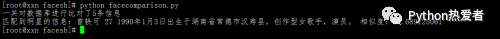 print "匹配到明星的信息:"+ info[0],info[1],info[2],"相似度:"+str(similarkey)