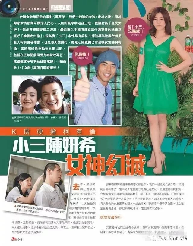和文章也传过绯闻,有媒体拍到陈妍希和文章勾肩搭背,两人非常亲密。