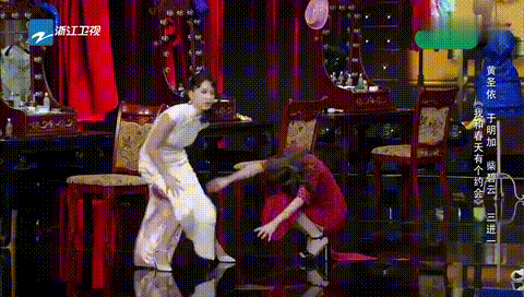 两人第一次搭戏,于明加在明知自己和搭档没养成足够的默契的情况下,宁可穿帮也要用舞台技巧,结果躲得假到飞起,这就是对戏的不尊重。