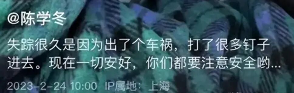 今年2月份,陈学东曾发布视频透露自己遭遇车祸腿受伤,正在积极治疗康复中。尽管他始终保持乐观,但伤势的严重程度让所有人都忧心忡忡。