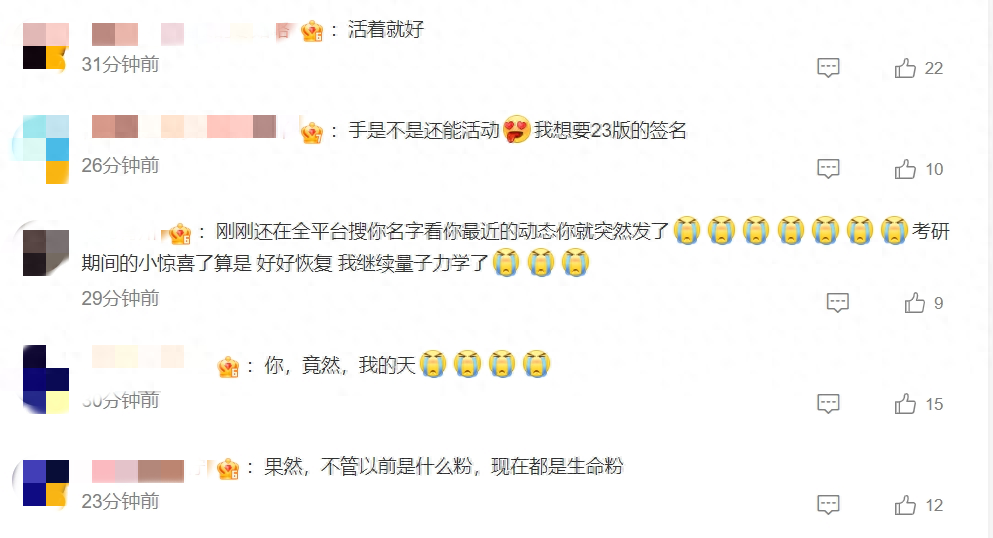 不过,这些留言都代表了粉丝们对陈学冬深深的关心和祝福。正如粉丝所说,活着就好!活着比啥都强,活着就是大家最好的祝愿!