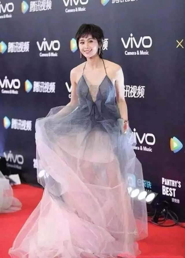 王子文的穿着果然都很大胆,吊带长裙,都是透明的纱网,真正能遮到的就是胸口到大腿根的距离,其余部分全都暴露在外面,很性感。