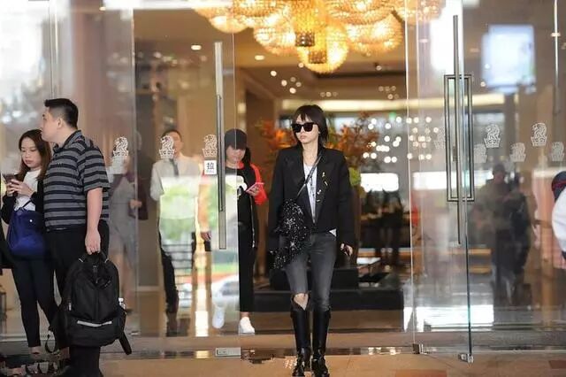 王子文一身全黑,酷中带美,架黑超戴毛线帽,散发出一股神秘的气息,再穿长靴一秒钟秒变1米8。