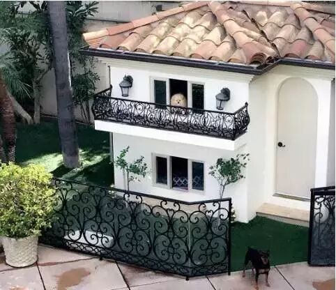 说到人不如狗,其中最出名的应该就属帕里斯·希尔顿的狗狗们了,据说她家有17只宠物,让人觉得最夸张的是她居然为她心爱的白色小博美盖了一栋两层别墅,而且承重和高度都非常一比一,甚至可以让希尔顿本人在里面走上走下的。但如果你觉得这只是个比较大的狗窝那可就错了,这个豪宅里面设施一应俱全,有沙发有阳台,居然还有花园。。。看完可以说是觉得自己非常心酸了。。。