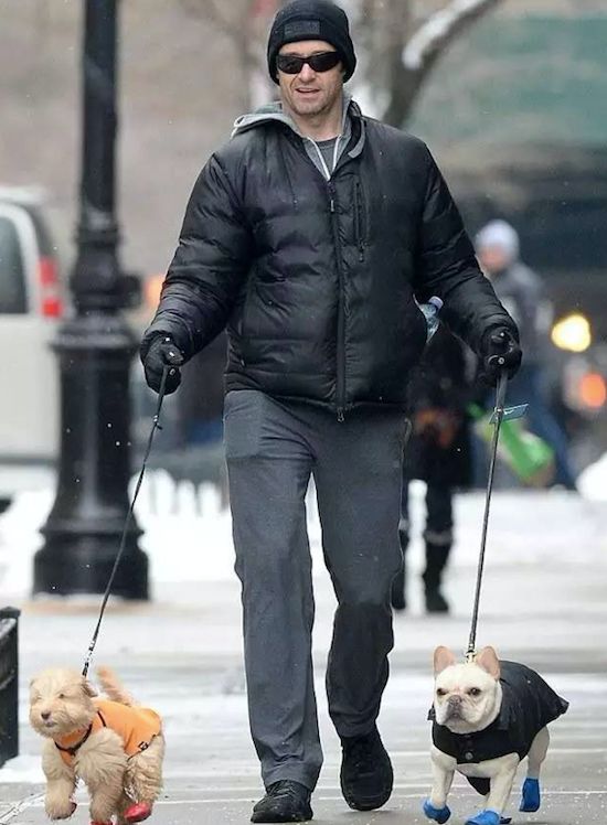 相比希尔顿的奢侈,金刚狼休·杰克曼就显得比较正常了。他养了一只可爱的法斗和一只卡其色的猎犬混贵宾的可爱小狗。