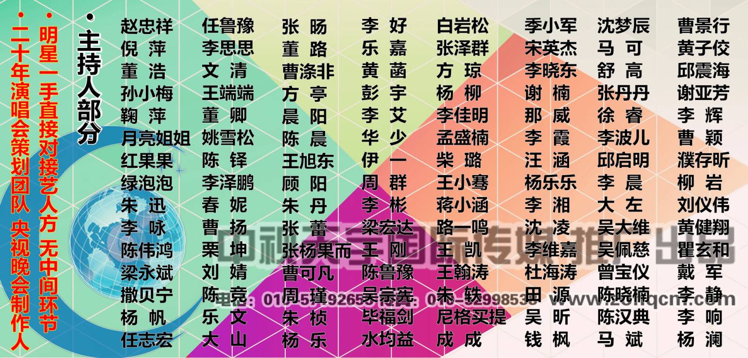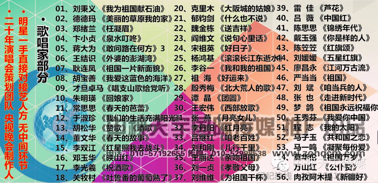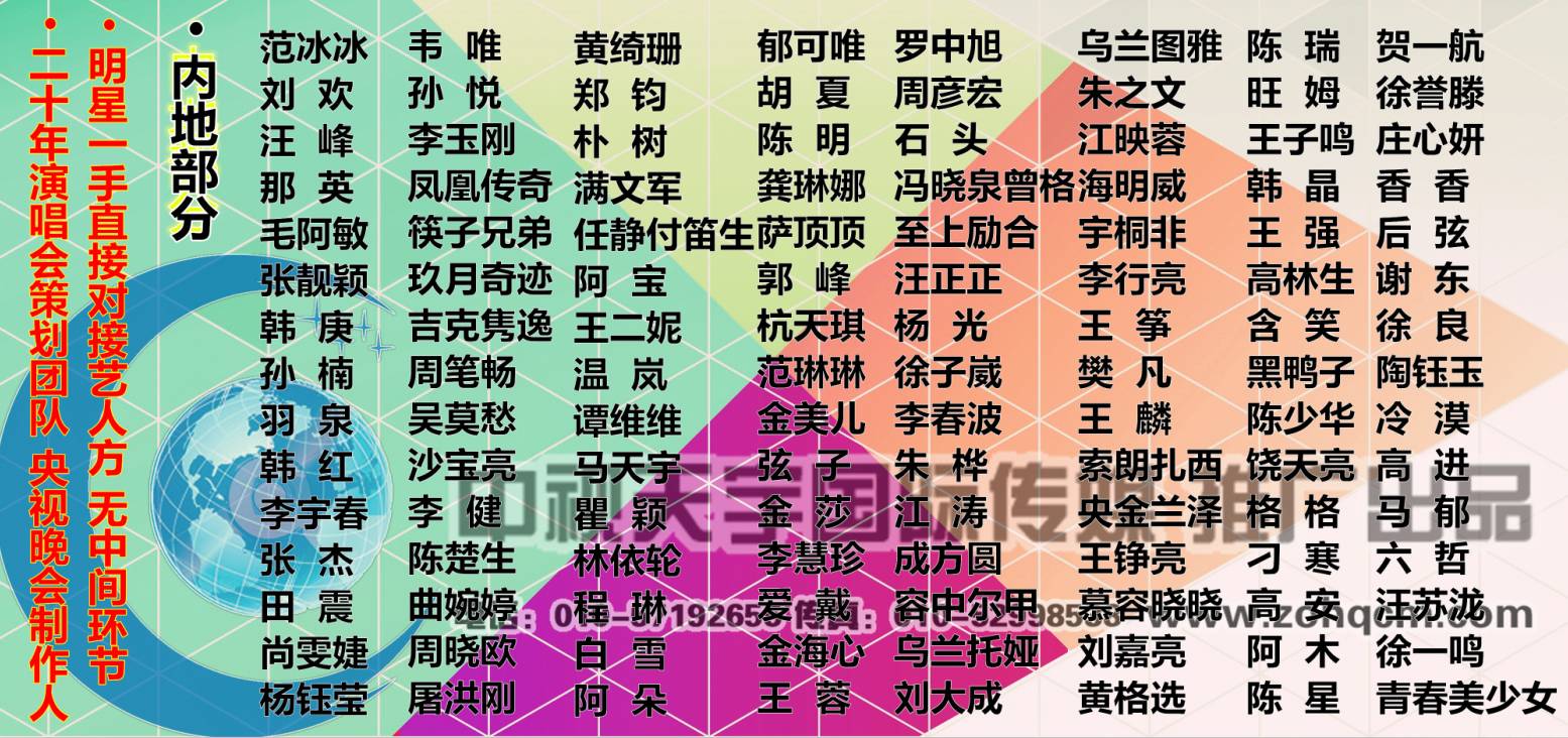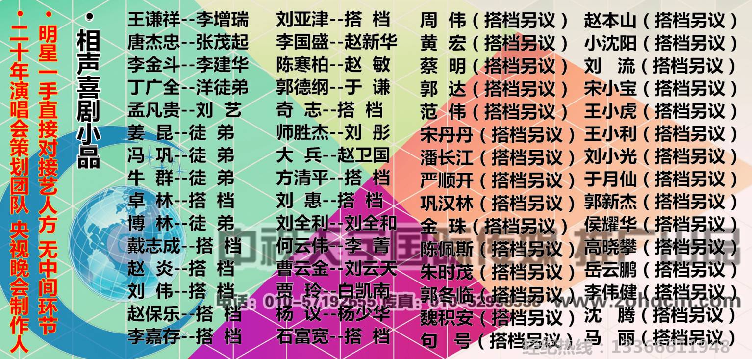 注:以上个唱为常用艺人名单,2017主题有变需致电沟通为准。