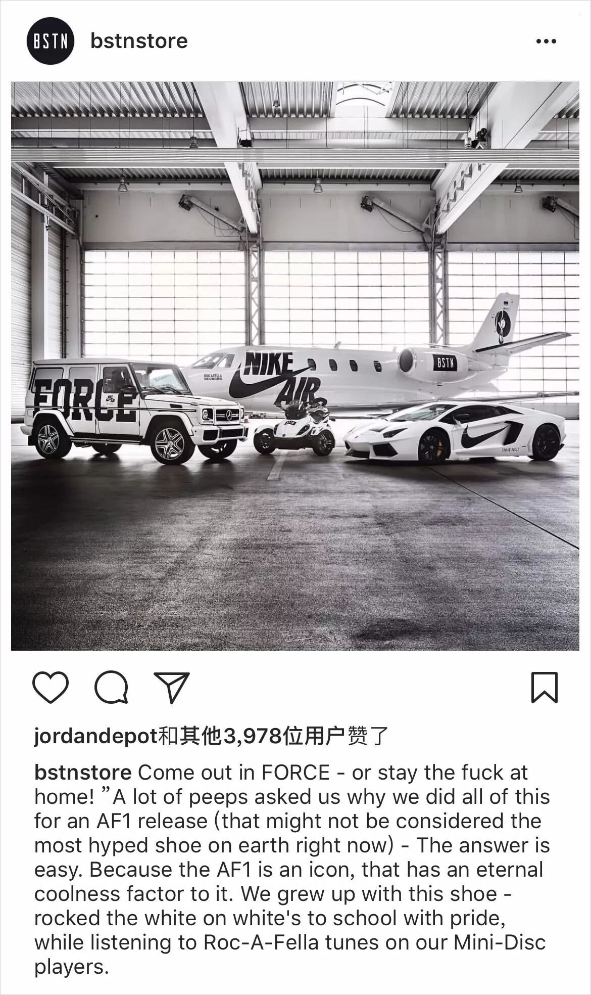 为了庆祝 Air Force 1 诞生 35 周年,Nike 在早先携手全球各领域意见领袖,打造了 AF100 特别企划,而在这一系列的鞋款迎来正式发售之际,德国的球鞋店铺 BSTN 则摆出了更大的阵仗作为纪念:将 CAN-AM SPYDER 电车、Mercedes-AMG G63、Lamborghini Aventador 甚至是私人飞机分别换上了代表 ACRONYM®、JUST-DON、TRAVIS SCOTT 以及 ROC-A-FELLA 的主题涂装。这样的发售现场,就算没能买到鞋子也一定是一次难得的体验吧。