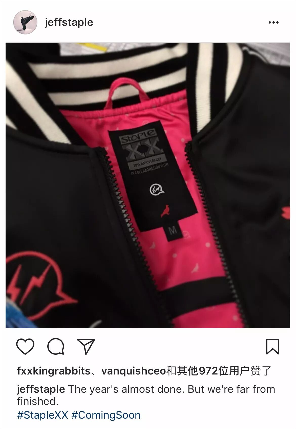 你一定还记得,早先在 Nike Dunk SB “Black Pigeon” 发售的时候,藤原浩就曾曝光过一款带有 fragment design 的联名特别版本,而通过今天 Staple Design 主理人 Jeff Staple 发出的 Instagram 来看,双方的合作可不止这么简单。如图所示,其将与藤原浩和石川凉共同主理的 DENIM by VANQUISH & FRAGMENT 带来全新联名企划,率先曝光的是一款带有双方品牌 Logo 和 “20th ANNIVERSARY” 字样的 Bomber 外套。另外据 Jeff Staple 透露,这个企划将会在今年年末正式发布,对于没能入手 “Black Pigeon”的朋友来说,或许是一组不错的新选择?