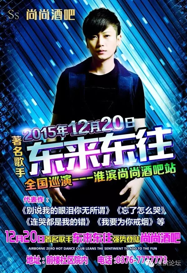 还记得那首“别说我的眼泪你无所谓”吗?还记得那首“连哭都是我的错”吗?这些陪伴我们青春的歌。原唱著名歌手“东来东往”12月20号莅临淮滨尚尚酒吧献唱。