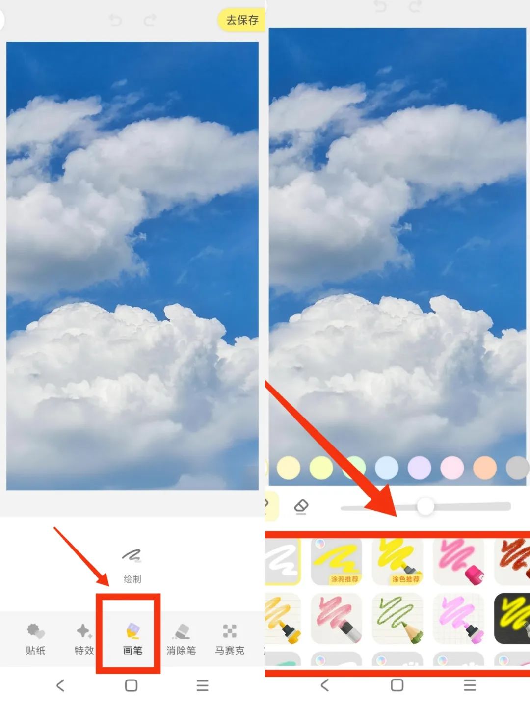 打开黄油相机,导入准备好的图片后,点击底部菜单栏的“画笔”功能,选择你喜欢的笔刷类型,例如毛笔、水彩或马克笔等。