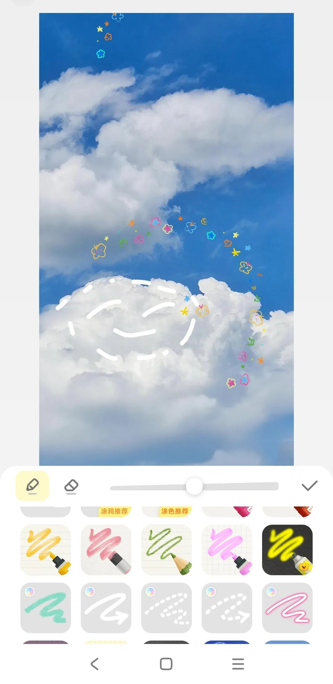 接着就可以开始自由创作啦!比如勾勒一个云朵小动物的轮廓,再为它画上眼睛、嘴巴,甚至点缀一些星星、爱心等小元素。如果某一笔不满意,可以随时撤销,重新绘制。