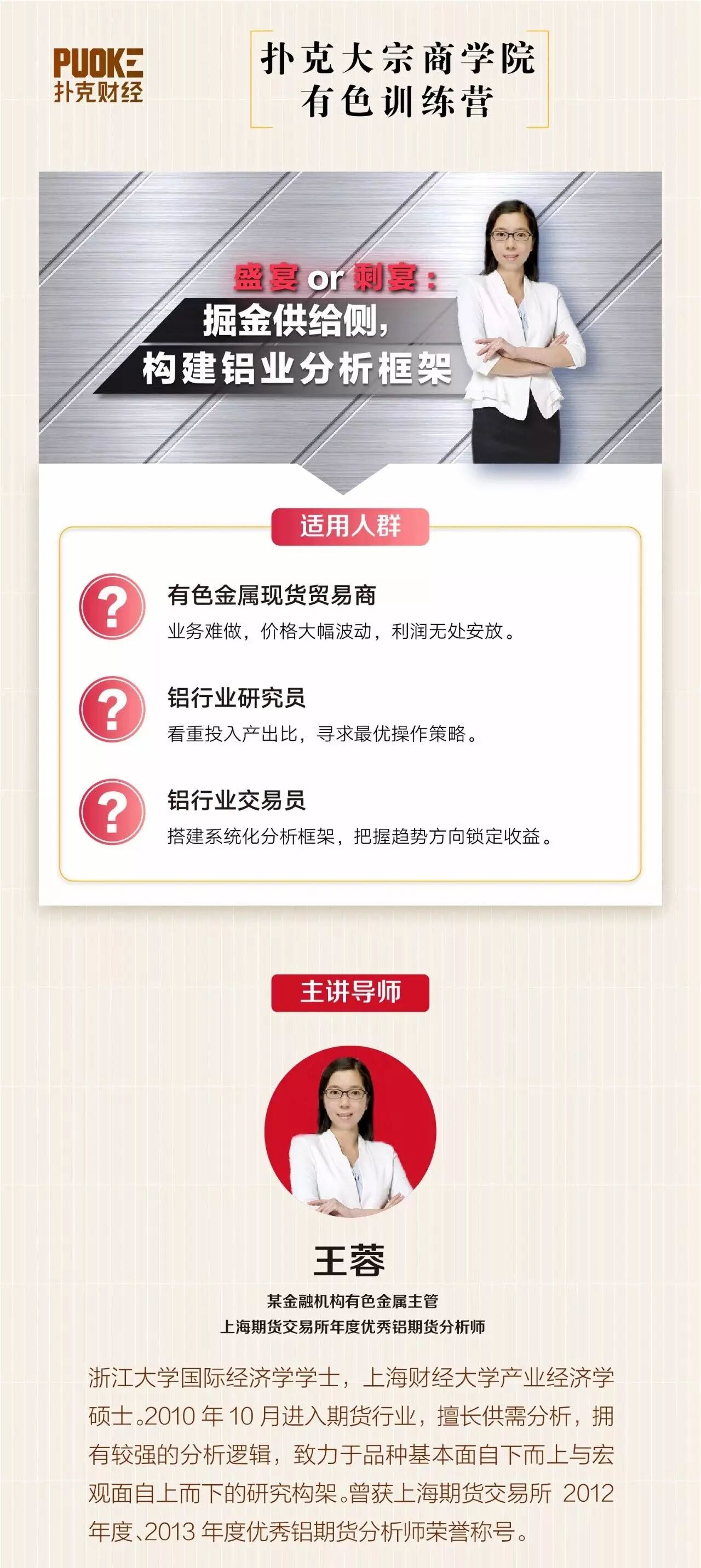 供给侧改革如火如荼,已经成为近期影响铝价的主要因素,那么,在供给侧背景下,铝价能否一飞冲天?年内高点是否已经出现?下半年供需格局是否会有所改变?后续应该关注哪些重点?今天,扑克采编小分队与有色及贵金属的大咖王蓉老师做了深入交流,挖掘出她在铝上研究的方法秘密。