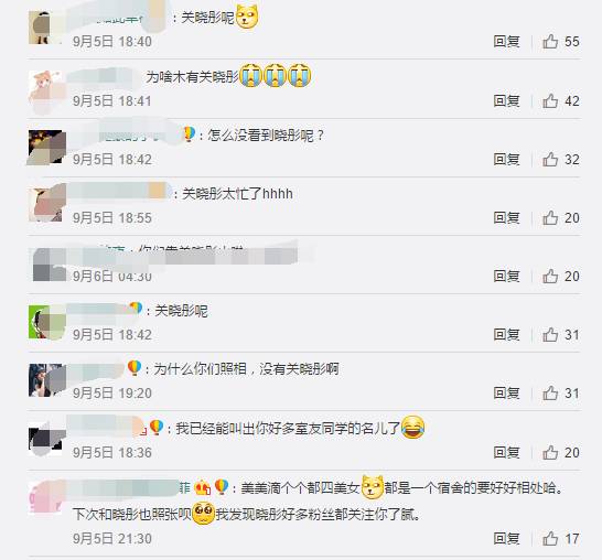 可是,开学至今的一个星期里,还没怎么看到关晓彤与室友之间的合影,也没有看见关晓彤参见什么电影活动,难道是她与室友不合?