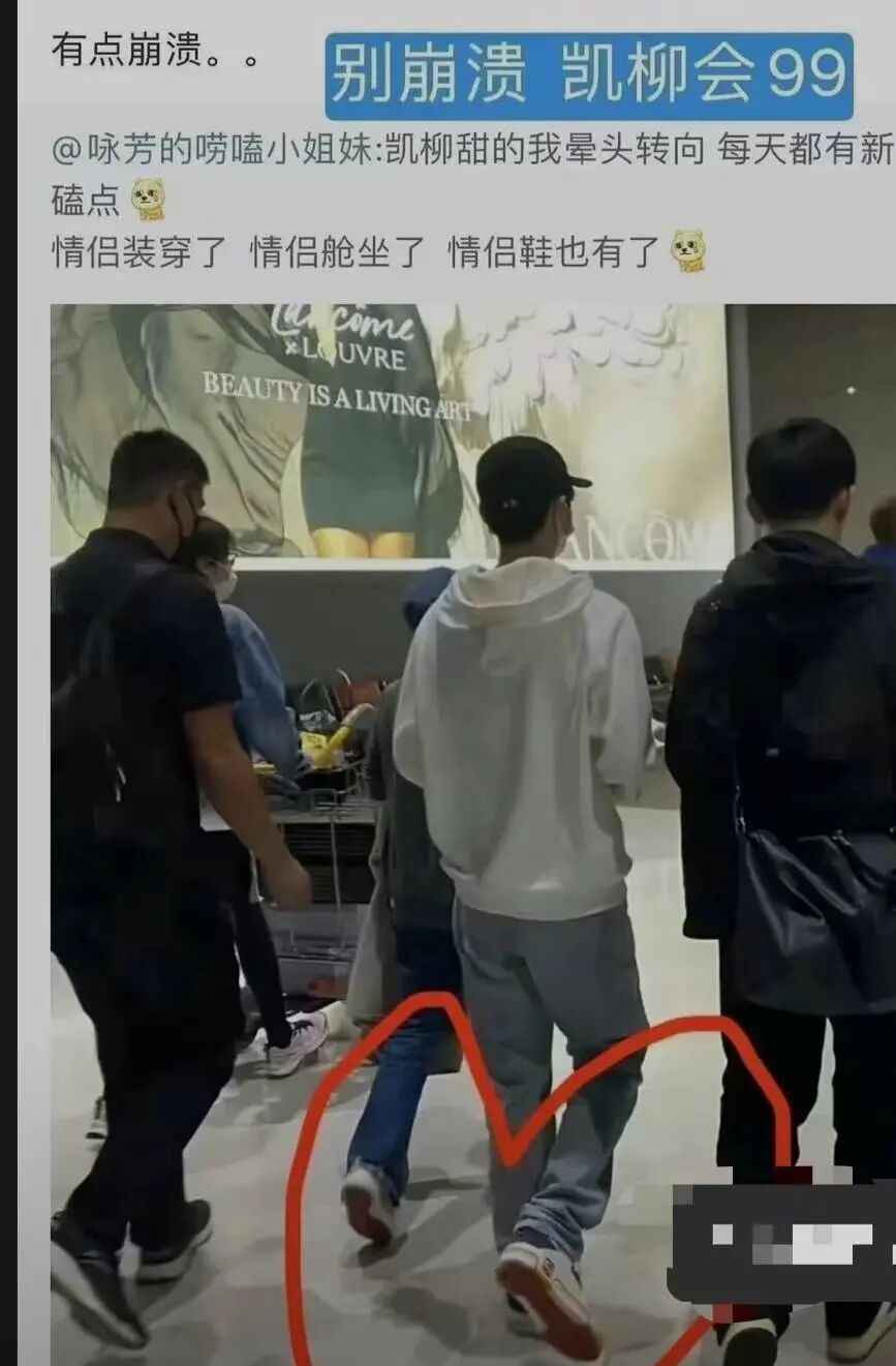 两人在机场的时候穿着同款鞋子,但估计是为了避嫌,两人走机场的时候也是一前一后,只不过杨柳跟的很紧就是了~