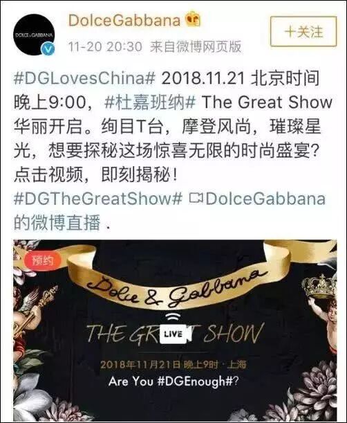 △ 杜嘉班纳11月20日发布的活动预告截图