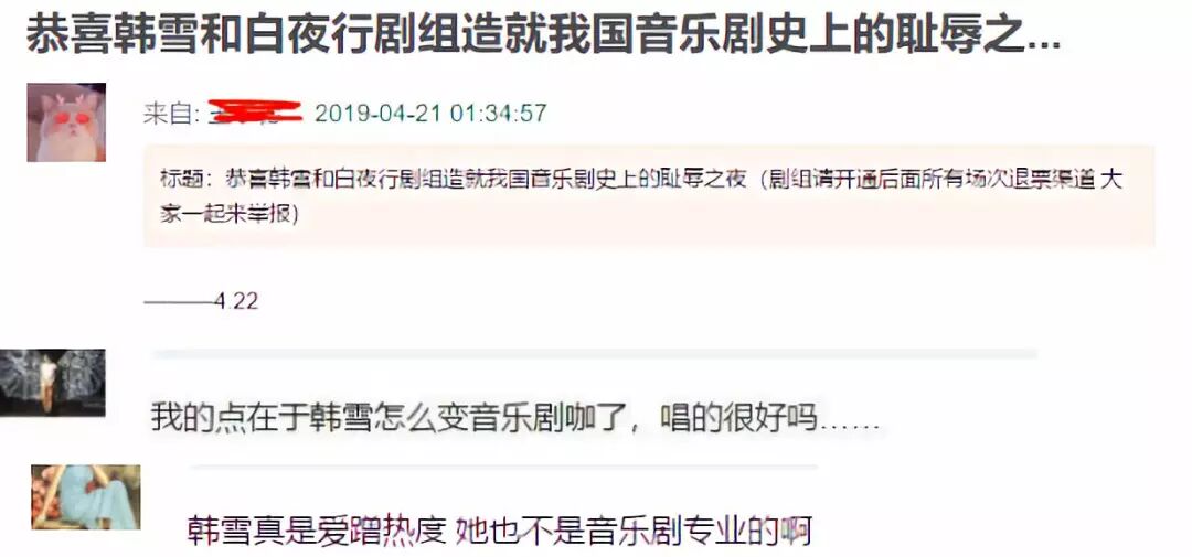 对于音乐剧这个小池塘来说,韩雪所代表的话题性和自带的流量,算得上是顶流了。这个剧无所谓B角,因为韩雪是不可替代的。国内比她水平高的女演员一定有,但她们带不来《白夜行》的商业成功和话题性。