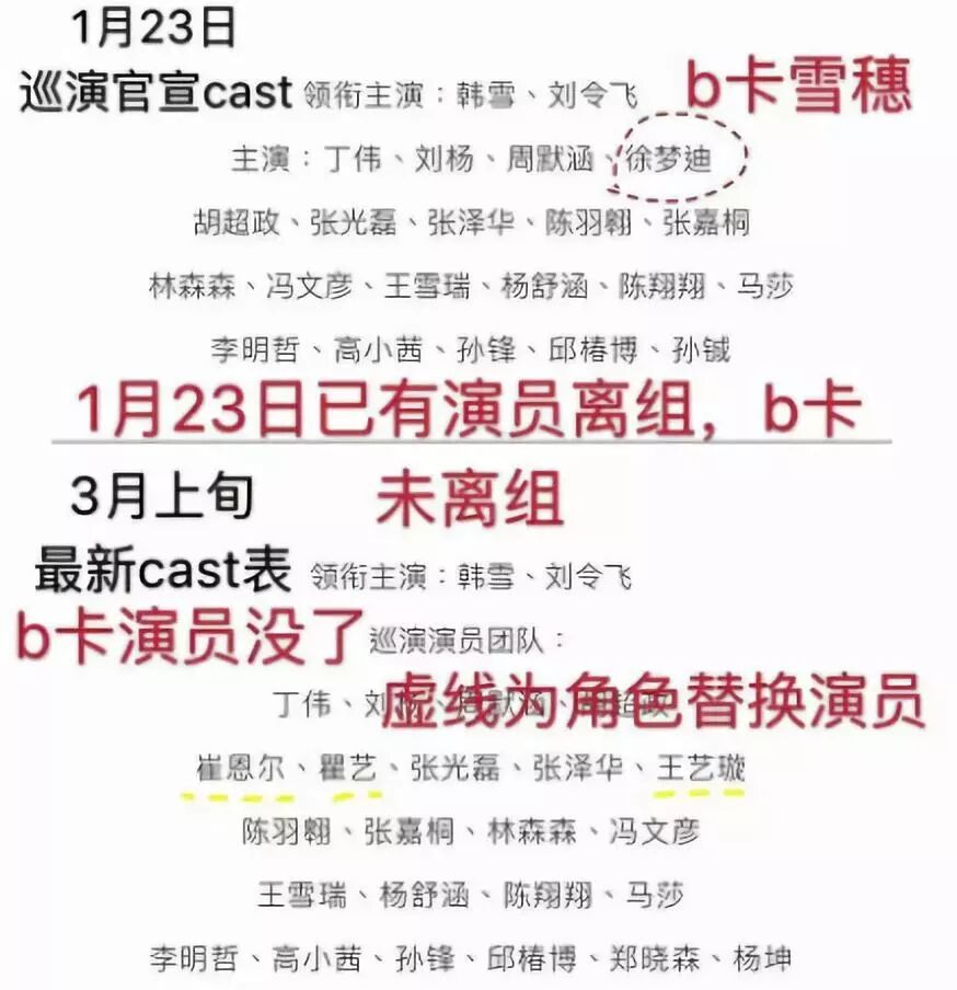 但是到了今年3月26日,《白夜行》音乐剧的卡司进行了调整,徐梦迪的角色被换成了另一位演员王赵沫妍。徐梦迪也离开了《白夜行》音乐剧的巡演阵容,B卡雪穗似乎没了踪影。
