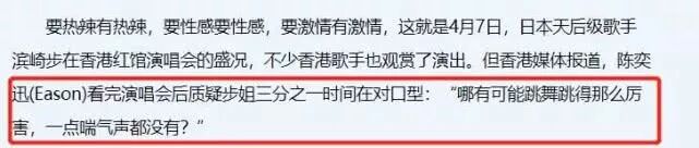 他还曾经刚到去质疑滨崎步假唱,最后被“步迷”公开讨伐,要求他公开道歉,还发起了罢买Eason唱片行动。