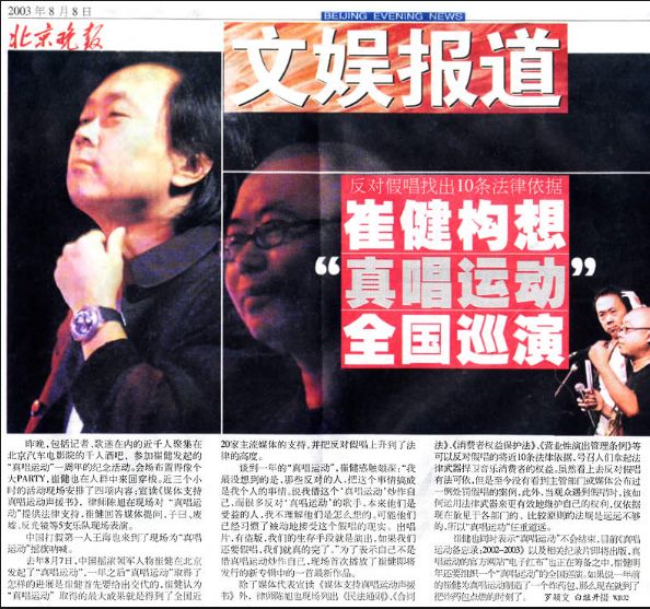 从此,龚琳娜坚持每一个活动都真唱,而千禧之初推广真唱运动的还有摇滚大师崔健。
