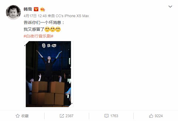 早在演出之前,韩雪就发了几次微博表示自己“又感冒了”。
