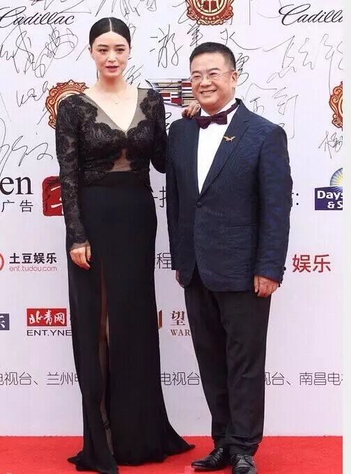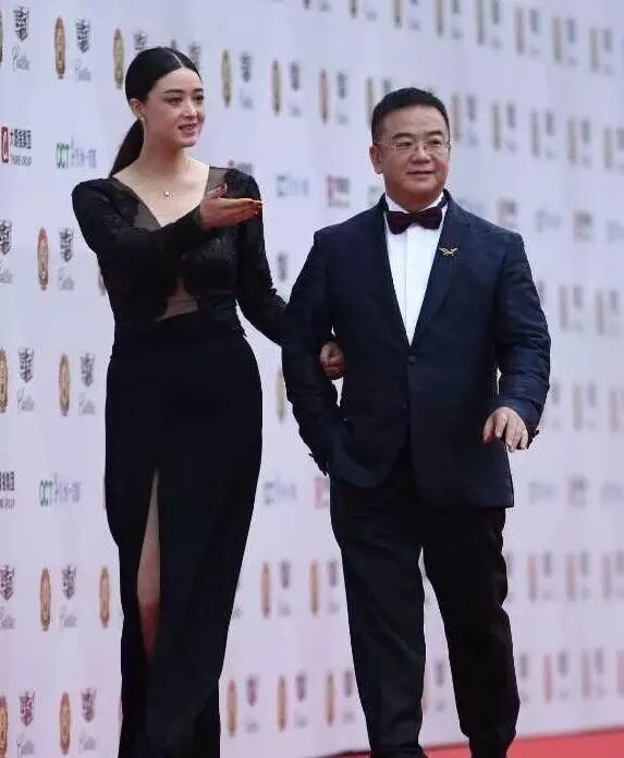 还有她跟黄维德走红毯的照片,她微博里发的照片是长这样的: