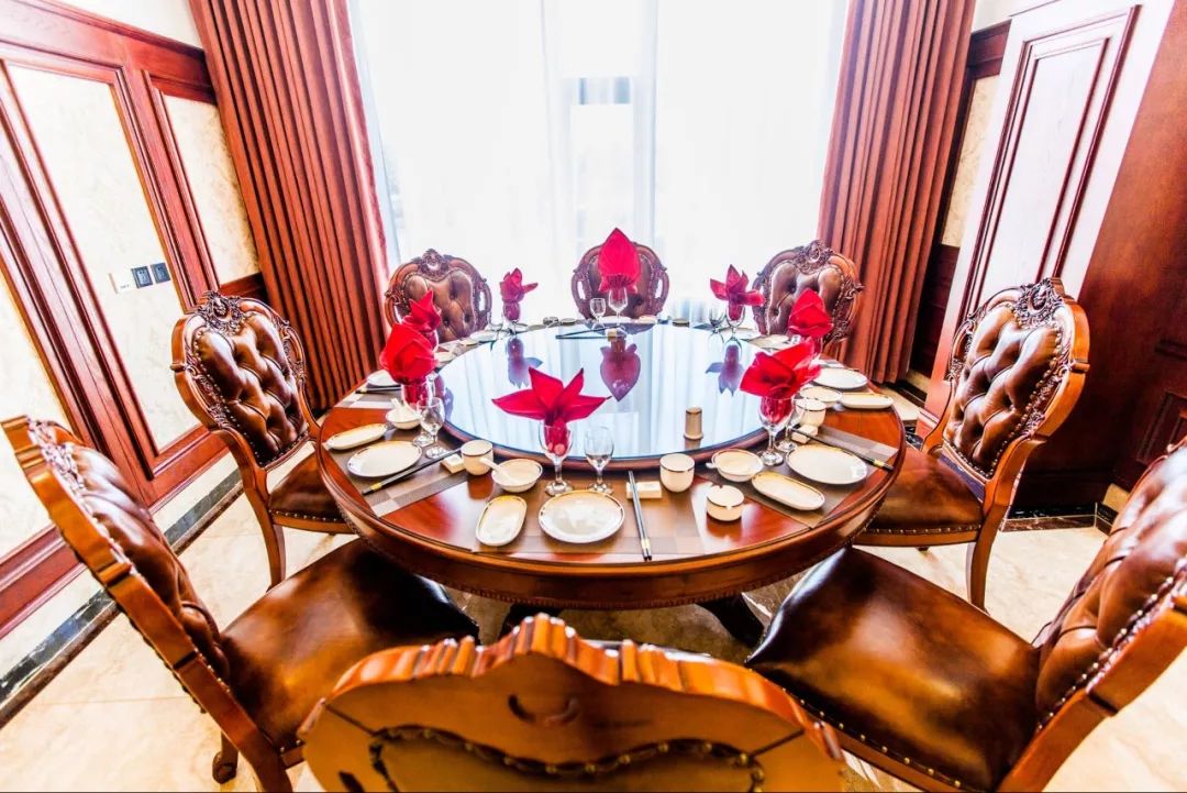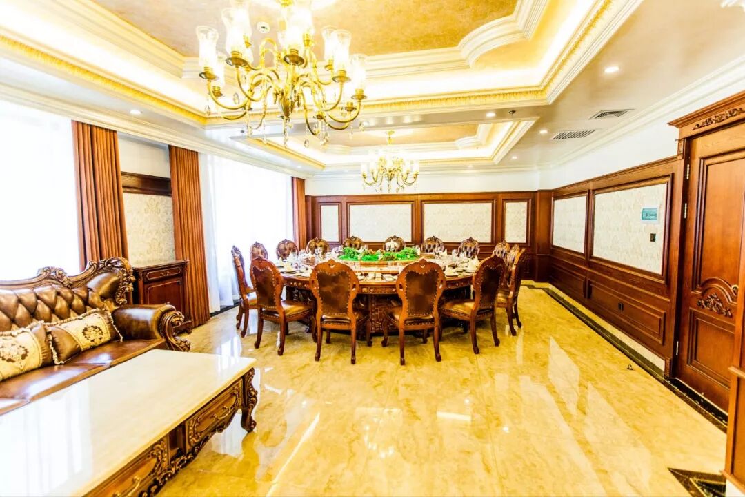 我宾馆内设近60个房间,装修豪华,拥有豪华婚庆房,豪华套房,标准双人间,标准单人间,VIP商务房,特价房,钟点房等不同房型,自助早餐免费;酒店特色海鲜餐饮,中餐,承接商务高档接待餐