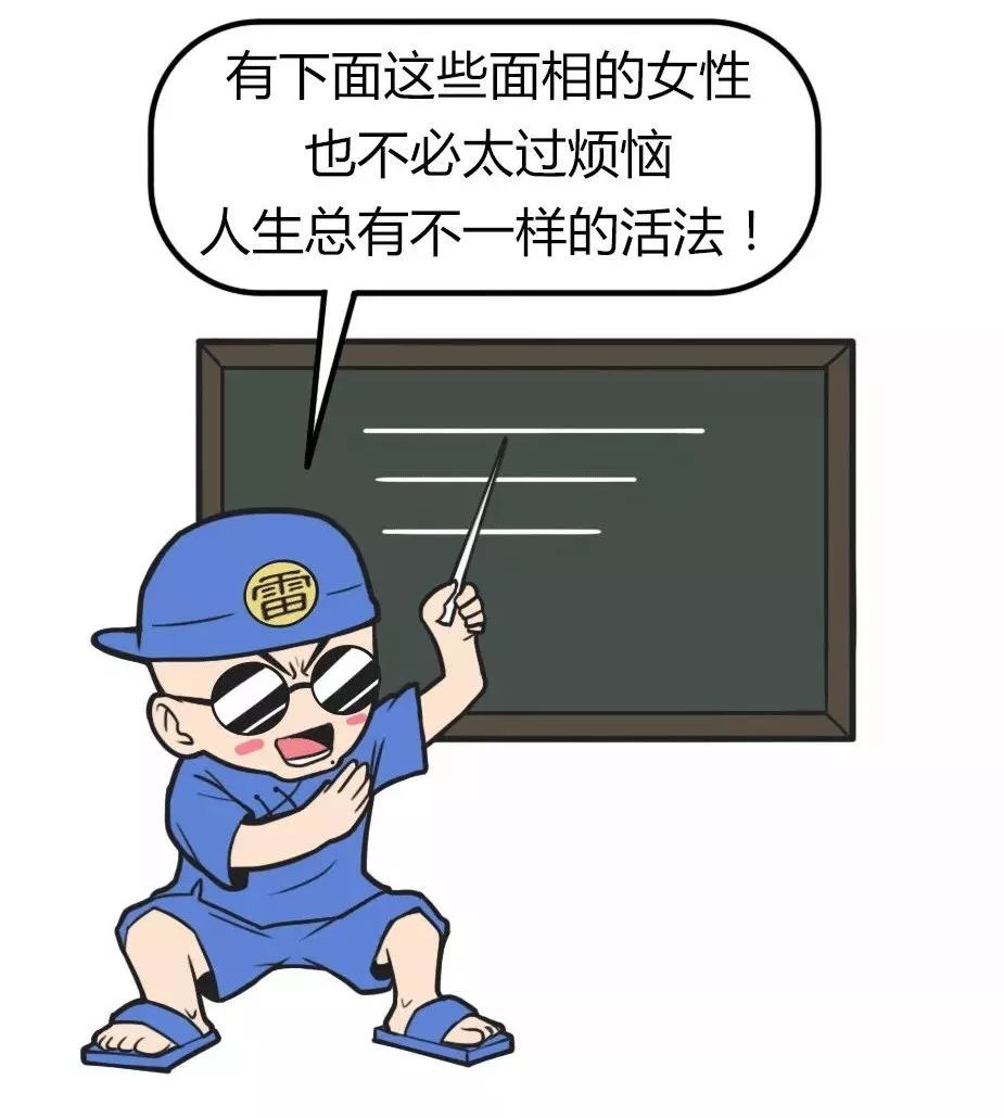 这样的面相不论男女,性格都比较中性,人缘运势很好,如能有所作为,生活上便会和和美美,快乐幸福。