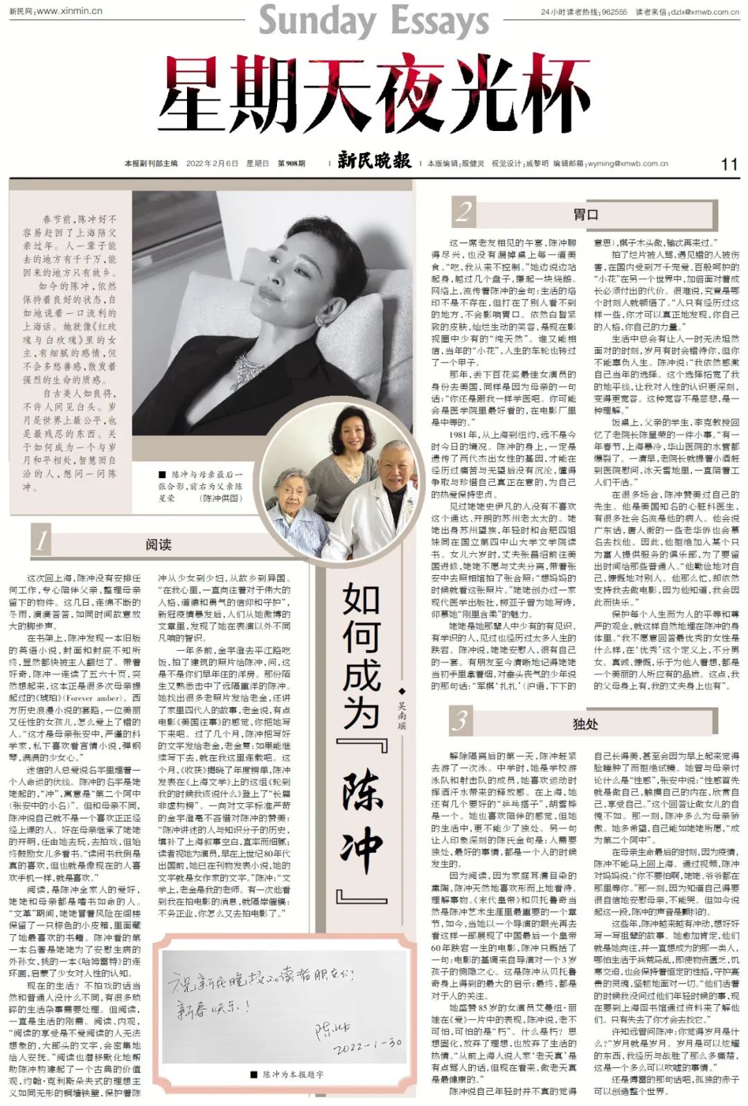 在母亲生命最后的时刻,因为疫情,陈冲不能马上回上海。通过视频,陈冲对妈妈说:“你不要怕啊,姥姥、爷爷都在那里等你。”那一刻,因为知道自己得要很自信地安慰母亲,不能哭。但如今说起这一段,陈冲的声音是颤抖的。