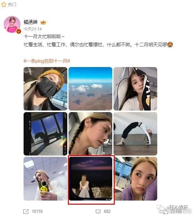 杨丞琳昨日21点左右在微博发文,表示「十一月太忙啦啦啦~忙着生活、忙着工作,偶尔也忙着摆烂,什么都不做。十二月明天见啰」,并挑选出了15张照片,hashtag「一条plog告别11月」。随后在快23点时,李荣浩也发文,写下「昨夜海边」,并发出两张照片。