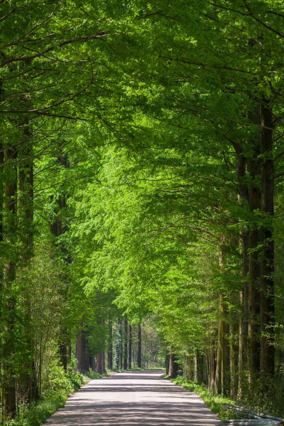 沿着湖边继续往前开,走着走着,感觉光线突然暗了下来,抬起头,才发现自己闯入了一个幽深的“时光隧道”。