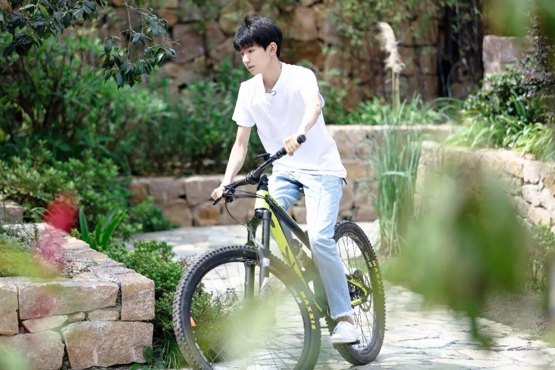 热爱骑行的王源,更是无数次骑着山地车穿过这片水杉林,阳光透过斑驳的树影落在他的身上,那灿烂的笑容,绝对是青春无敌。