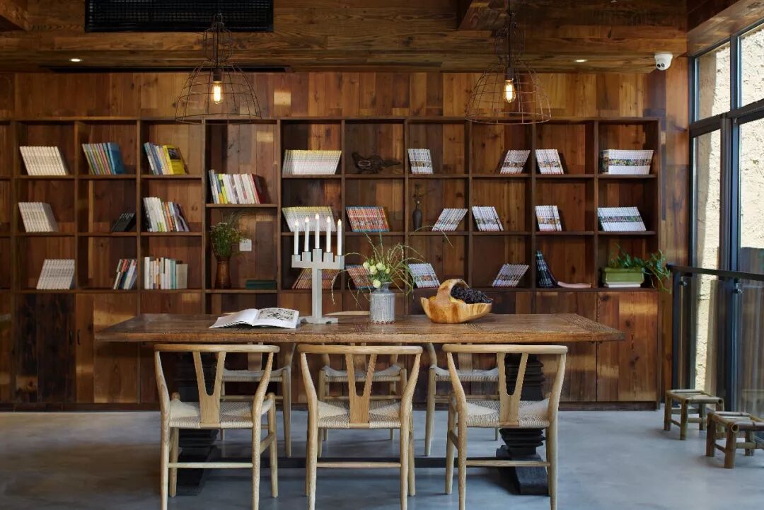 部分区域的墙面装饰了棕色原木板材,或是暖色调的石板,再挂上一盏黑色马灯,带有几分原始的狂野,却又点到为止,不做过分的渲染。
