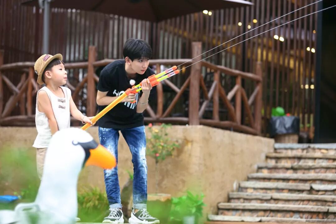 可爱的大男孩王源甚至偷偷掏出藏在鞋底的私房钱买了条泳裤,身上套着件T恤,就忙不迭地跳下了水,玩得不亦乐乎。