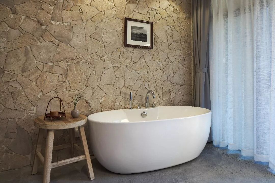 房间内墙是以稻草、泥土和混凝土混合制成的米白色墙体,表面略显粗糙,却保留了手作的温度。