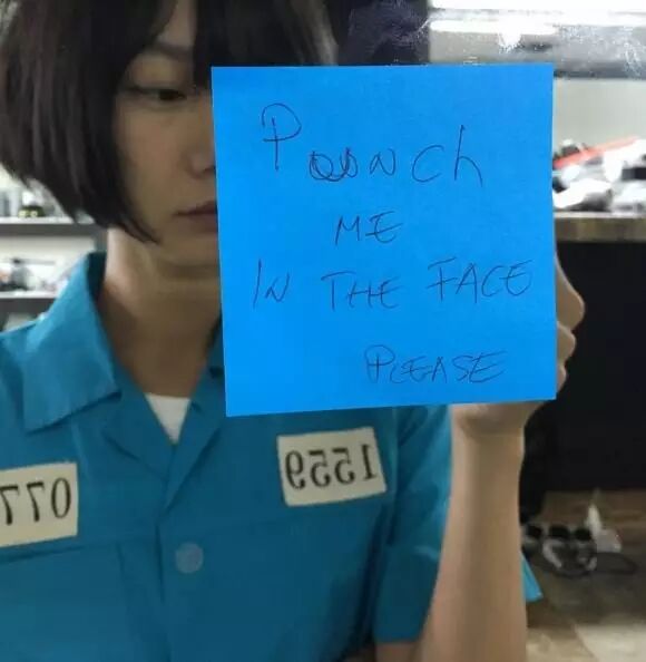 公开的照片中,裴斗娜身穿写着“1559”数字的蓝色囚服,对着镜头大玩自拍照。尤其,镜子上面写着“Punch me in the face please”,吸引了众人视线。