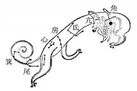 在我国古代天文学的“二十八星宿”中,位于东方的“角、亢、氐、房、心、尾、箕”这七宿共同组成一个完整的龙形星区,其中角宿好似龙的双角。每年冬春之交的夜晚,“龙角星”(即“角宿一”星和“角宿二”星)就从东方地平线上出现,而此时整个“苍龙”的身子还隐没在地平线以下,只是“龙角”初露,故称“龙抬头”。