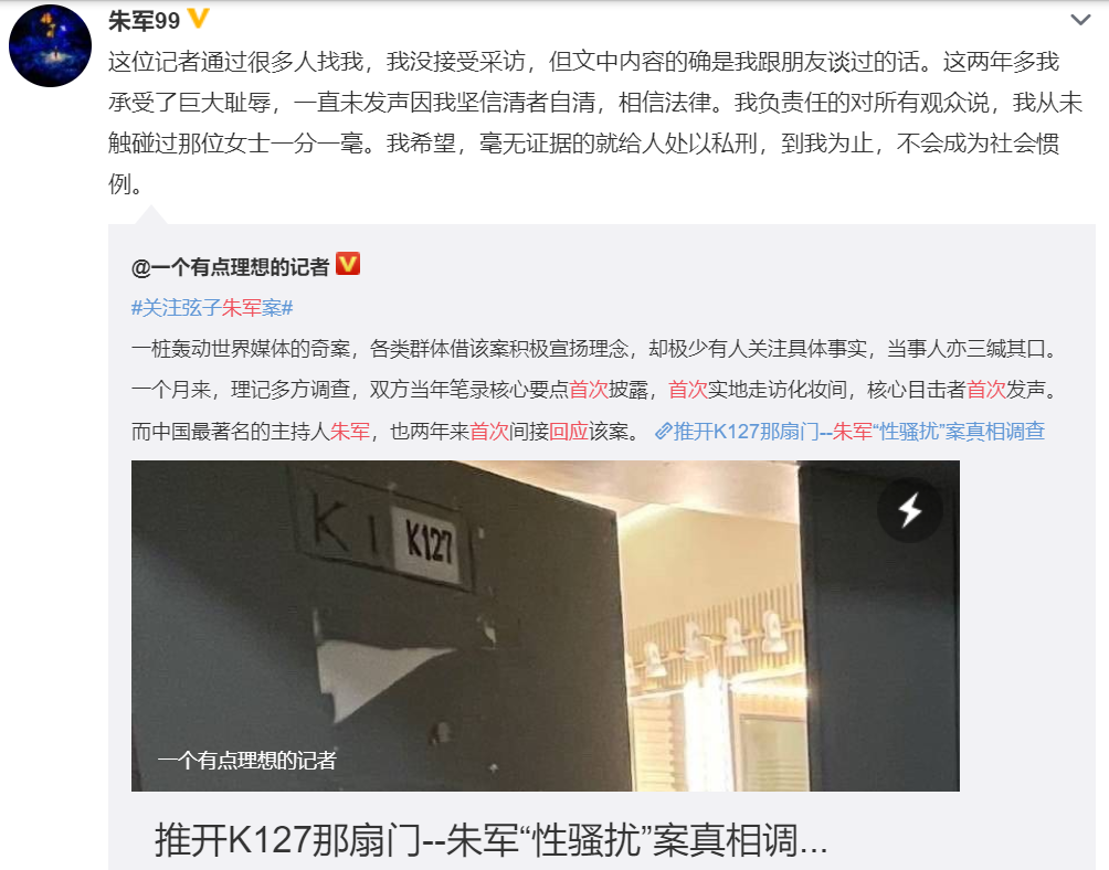 朱军首次回应