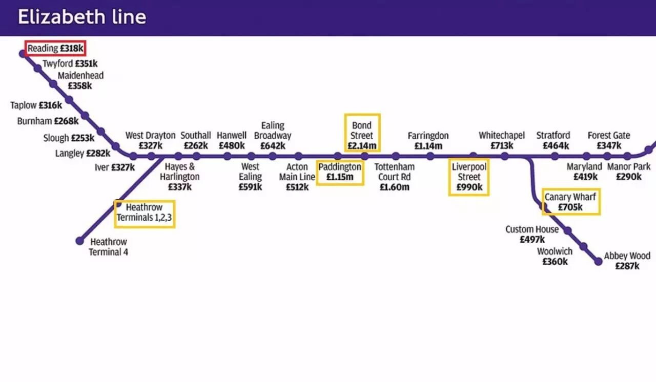Crossrail 效益!! 伦敦伊莉莎白线房价增涨了50以上!!