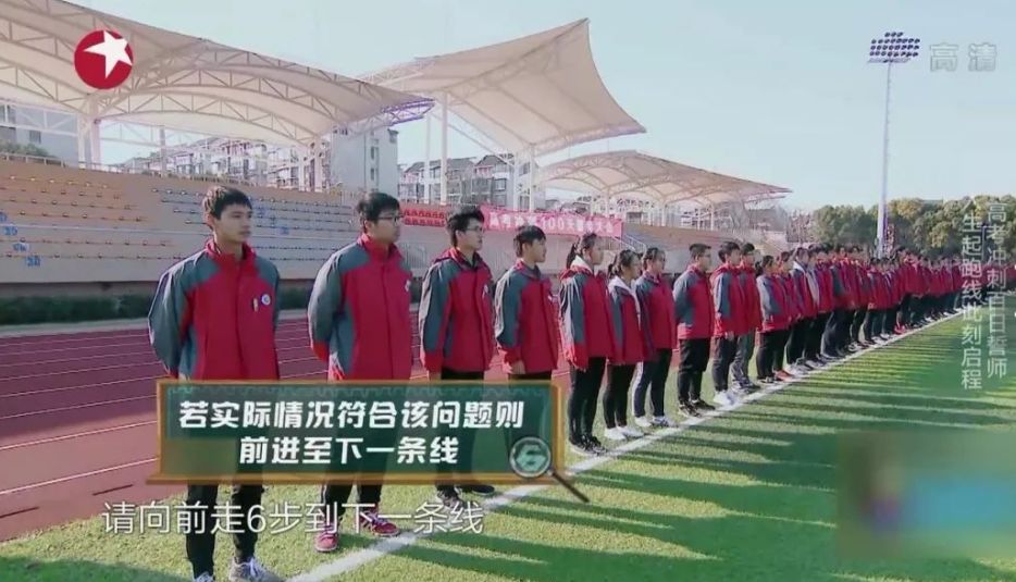 面对站在操场上的应届考生,嘉宾总共依次提出六个问题。