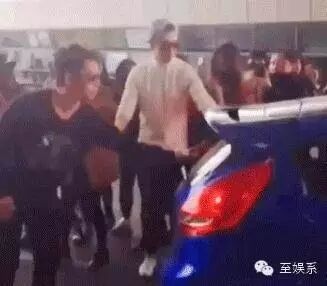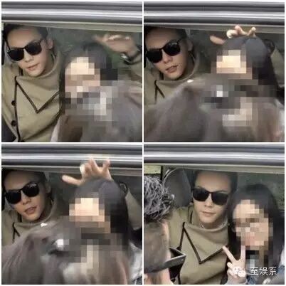 合照时用手给粉丝挡头,怕粉丝撞到保姆车的车顶