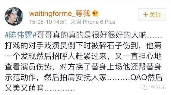 片场小演员受伤,他会送去哥哥般的安慰。