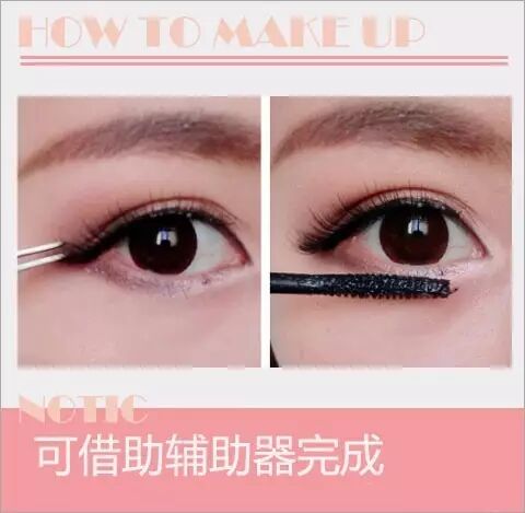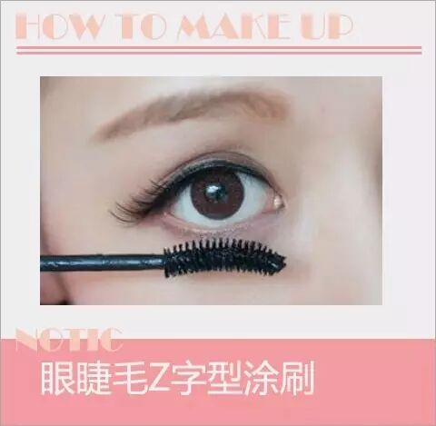 接着上一层睫毛膏,分别在上下睫毛根部Z字型涂刷。