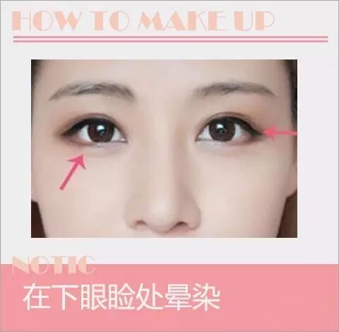 为了给双眼制造深邃感,不放用棕色眼影在下眼睑处进行晕染,营造出烟熏的效果。